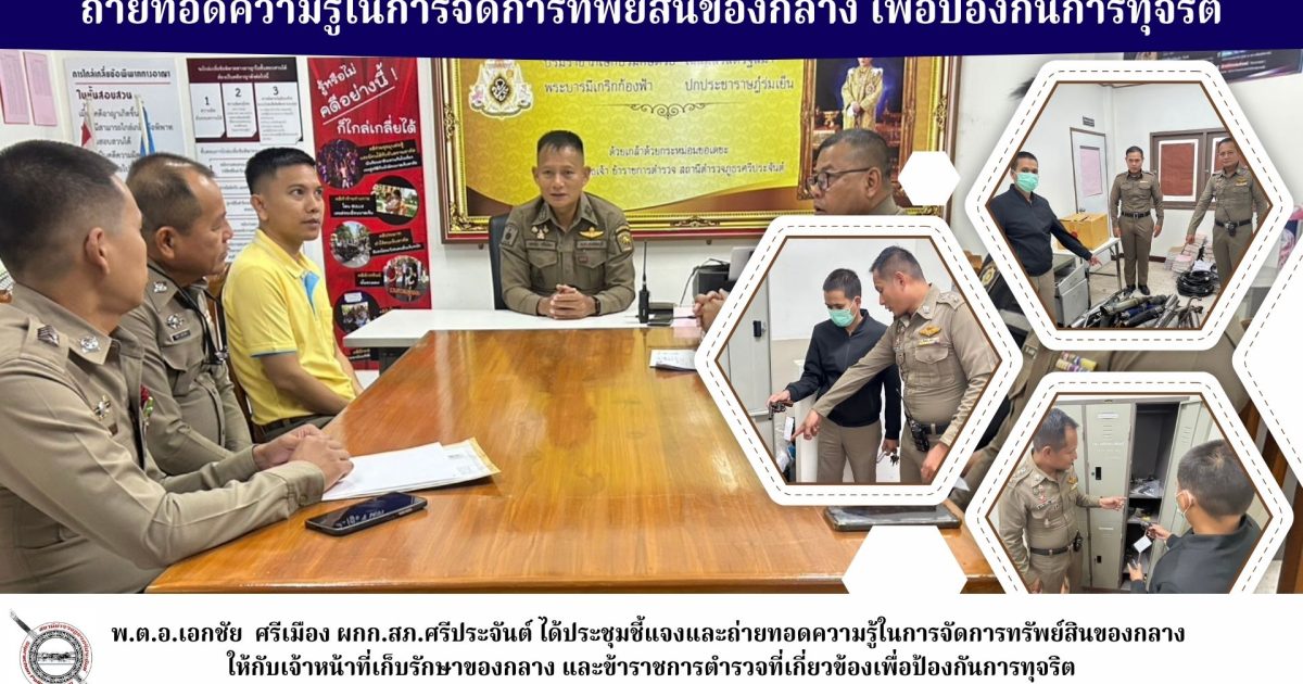 ผกก.สภ.ศรีประจันต์ จัดกิจกรรมการอบรมเผยแพร่เสริมสร้างความรู้ความเข้าใจให้เจ้าหน้าที่ในการจัดการทรัพย์สินของราชการ ของบริจาค และการจัดเก็บของกลางเพื่อป้องกันการทุจริตภายในหน่วยงาน